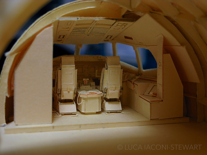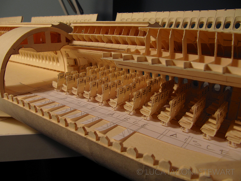 Inspired by high school architecture class where he was assigned to create simple paper models using cut paper manilla folders, San Francisco-based designer Luca Iaconi-Stewartwent home to begin construction on an extremely ambitious project: a 1:60 scale reproduction of a Boeing 777 using some of the techniques he learned in class. That was in 2008, when Iaconi-Stewart was just a junior in high school.