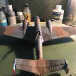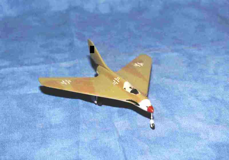 Die verwendeten Farben: Aircraft Grey, Dark Green RLM 83 und Brown Violet RLM 81 sowie Rot für die Nase , Schwarz und für den Düsenausgang Burnt Iron. An Decals wurden nur die Balkenkreuze und das „Sonderzeichen“ angebracht. Die Praxis, den Projekten Kennungen damals real existierender Fliegergeschwader zuzuweisen, halte ich für unnötig, da diese Geräte meist nie geflogen sind. Deshalb lasse ich bei solchen Modellen die Kennungen weg.