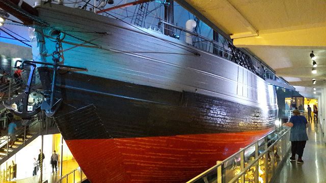 Nach ausgiebigem Rundgang verlassen wir das Museum und machen uns zu Fuß auf den Weg zur nächsten Sehenswürdigkeit, die fußläufig in ca. 30 Minuten erreicht werden kann. Dicht nebeneinander, direkt an der Wasserkante gelegen sind hier das Fram Museum, das sich der Geschichte der Polarforschung widmet, das das Kontiki Museum, das einen Nachbau der Fahrzeuge Ra II und Kontiki beherbergt, und last but not least das nationale Schifffahrtsmuseum, das sich hauptsächlich der zivilen Schifffahrt vom Altertum bis heute widmet.