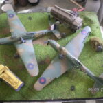 Als ich mein Modellbausortiment wieder mal aufräumen wollte, fiel mir der Bausatz der Fairey Battle von MPM (Maßstab 1/72) in die Hände. Da er seit längerem nicht mehr im Handel ist , war sofort der Gedanke, den baue ich mal. Dann fand ich auch noch den uralten Bausatz von Airfix und die Freude war komplett. Dazu noch ein Heft über die Battle, in dem sehr gute Aufnahmen des Flugzeuges waren. So weit so gut. Dann kamen die Probleme; das Airfixmodell ist ausgerechnet das einzige, das auf beiden Seiten im hinteren Bereich die Cockpitfenster nach unten hat. Laut dem Heft gab es dies nur an einem Flugzeug und dazu nur auf einer Seite. Meine Rettung war der alte Falcon Cockpit Satz, der eine gezogene Kanzel im Angebot hatte, die ich dann auch verwendete. Der von mir hochgeschätzte MPM Bausatz erwies sich als echte Enttäuschung, was sowohl die Verarbeitung als auch die Bauanleitung beinhaltete. Das richtige Anbringen der Kanzel war eine Schleifarbeit reinsten Wassers, da ansonsten die Kanzel ohne richtige Anbindung an den Rumpf lediglich „aufgesetzt“ aussehen würde. Und die Anbringung der Streben im Cockpitbereich war eine Sache für sich. Kurz und gut, ich hatte nur die Wahl Augen zu und durch. Das dann doch noch ganz ansehnliche Modelle daraus geworden sind, war der Mühe Lohn genug.