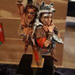 Da diese Kombination in der Museumsvitrine aufgehängt wurde, habe ich noch 2 Ösen angebracht, zum sicheren Sitz der Schnüre.